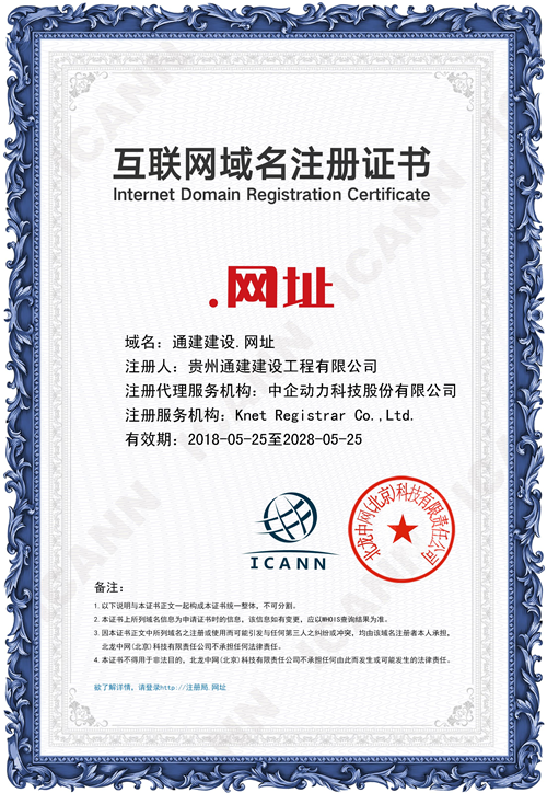 2017年10月“贵州通建”网站的开通,拉开了贵州通建建设工程有限公司新一轮发展的序幕。承蒙社会各界的支持与厚爱,加上“贵州通建”人对建筑事业孜孜不倦的执著追求和锲而不舍的敬业精神以及渴望成功的梦想,今天,域名“通建建设”已由贵州通建建设工程有限公司注册,并在国内顶级域名数据库中备案后正式落户“贵州通建”网站,敬请各位新老朋友关注。